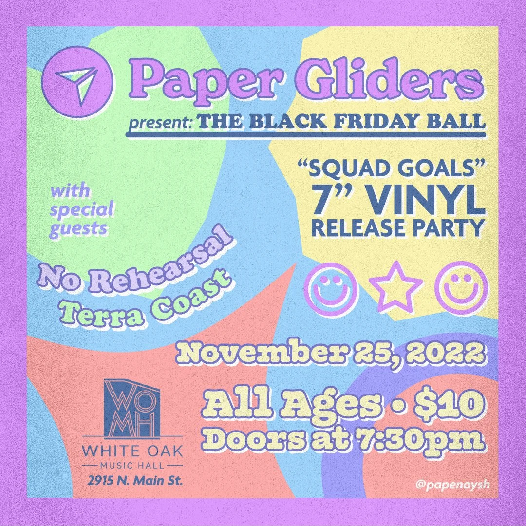 I was so happy to have the opportunity to make another Paper Gliders flyer for their next big show at White Oak Music Hall.