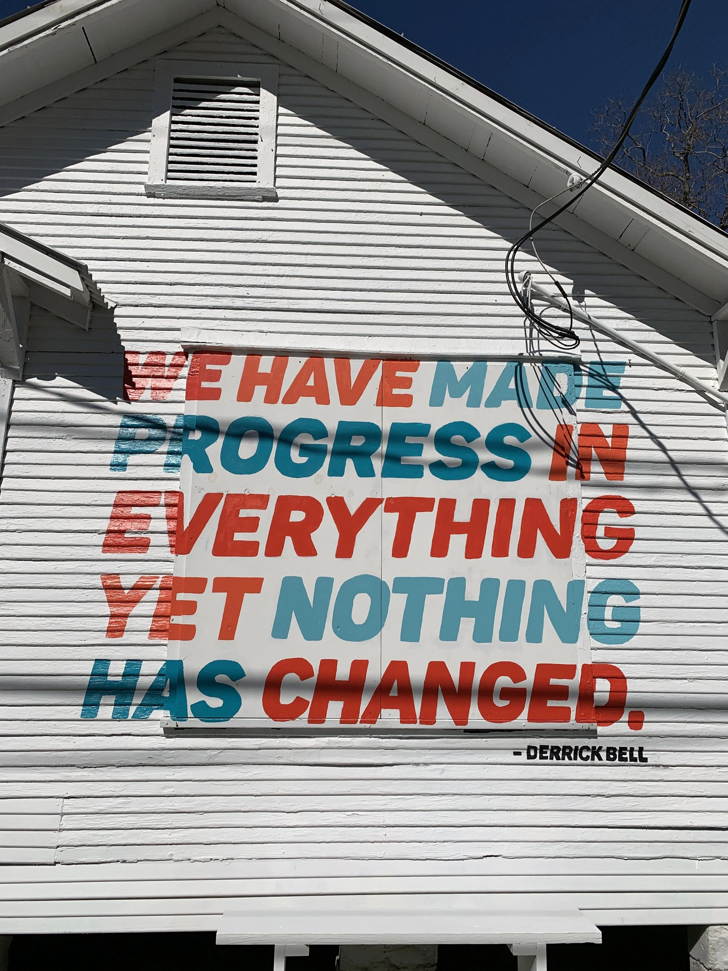 The mural in front of the house painted by students of UHD’s Center for Critical Race Studies, and designed by me.